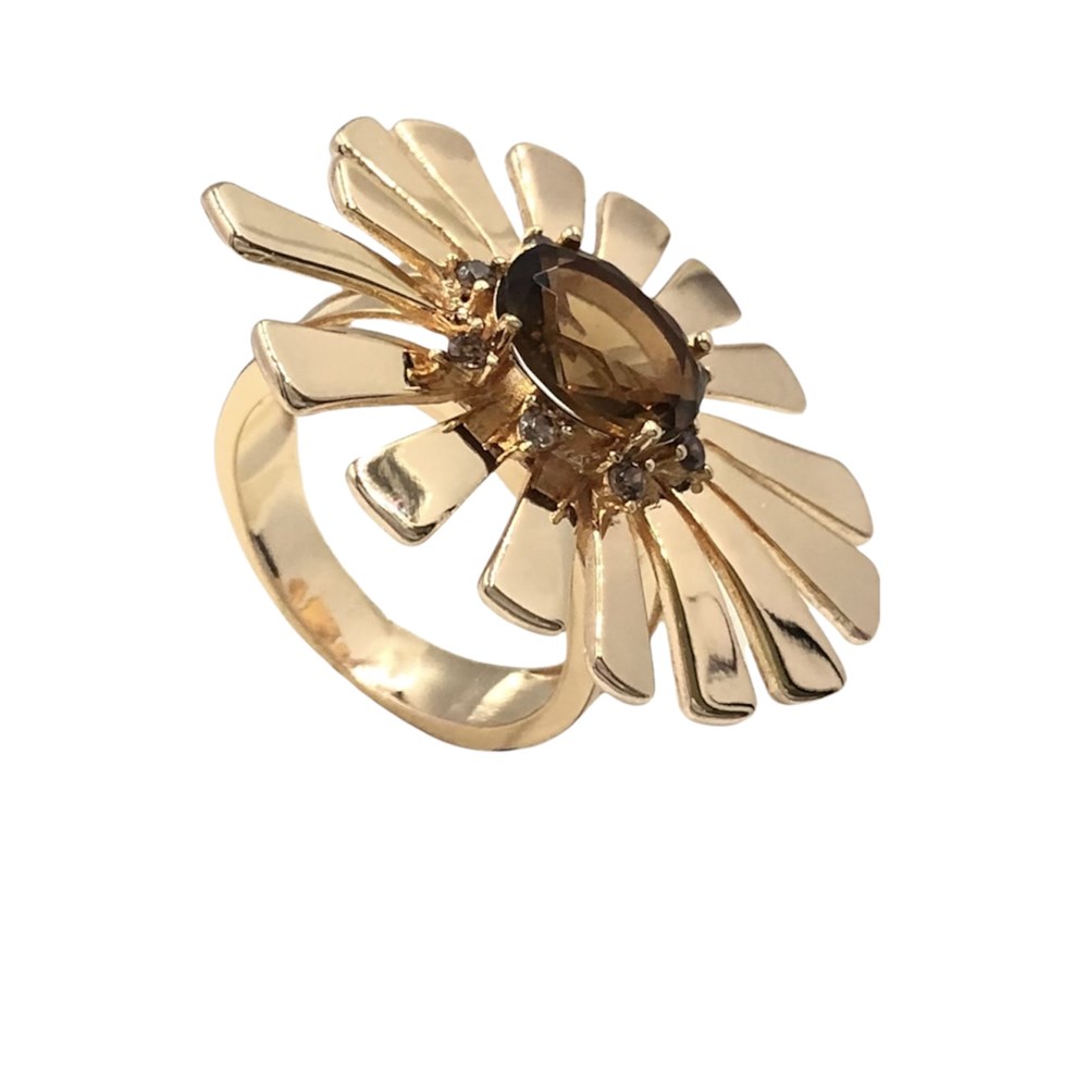 ANEL BAN. DOURADO PEDRA MORGANITA 3 VOLTAS LATERAL OVAL FLOR 26MM (CAT)
