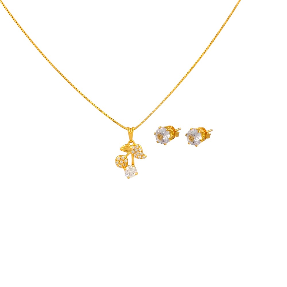 Conjunto Folheado 18k Cacho de Cereja em Zirconia