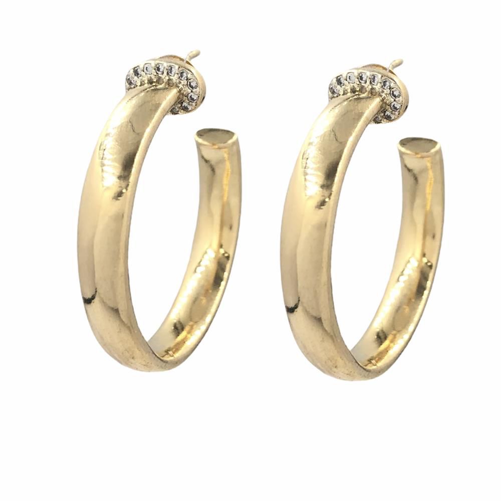 Brinco Folheado A Ouro 18K Meio Aberto Liso Com Detalhe em Zirconia