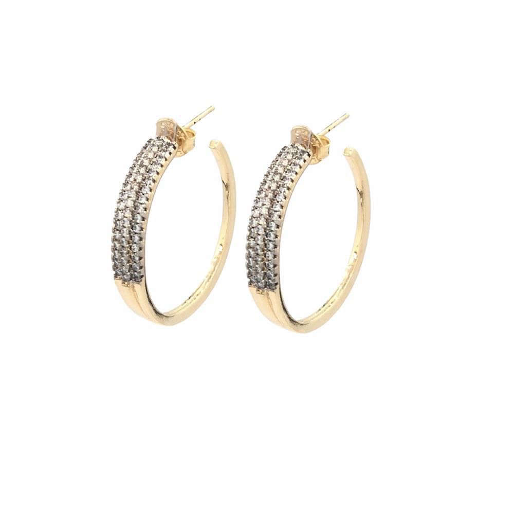 Brinco Folheado A Ouro 18kKL Meio Aberto Com Zirconia